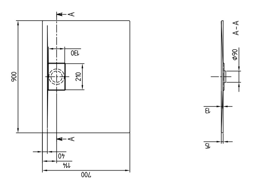 Receveur Architectura Metalrim, 700 x 900 x 15 mm, blanc