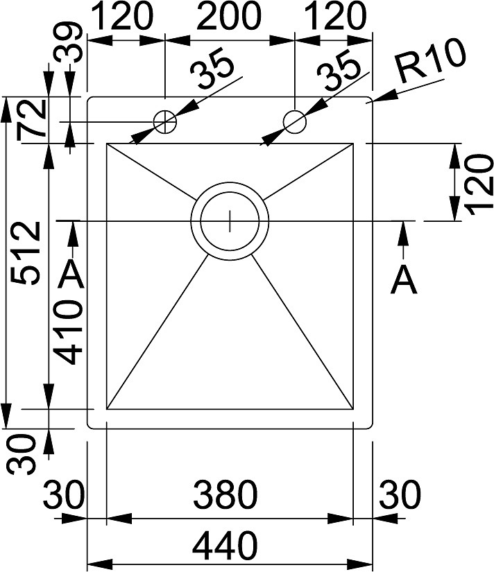 Franke Planar - Inox Évier PPX 210/610-44 TL, 440x512 mm + siphon (127.0203.470)
