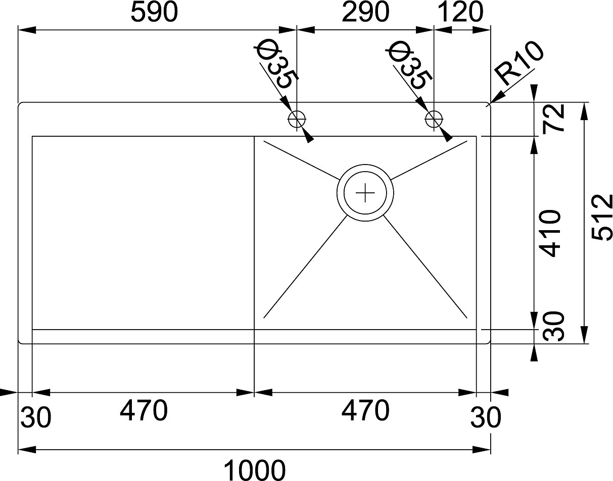 Franke Planar - Inox Évier PPX 211/611 /7 TL, 1000x512 mm, droite (127.0203.465)
