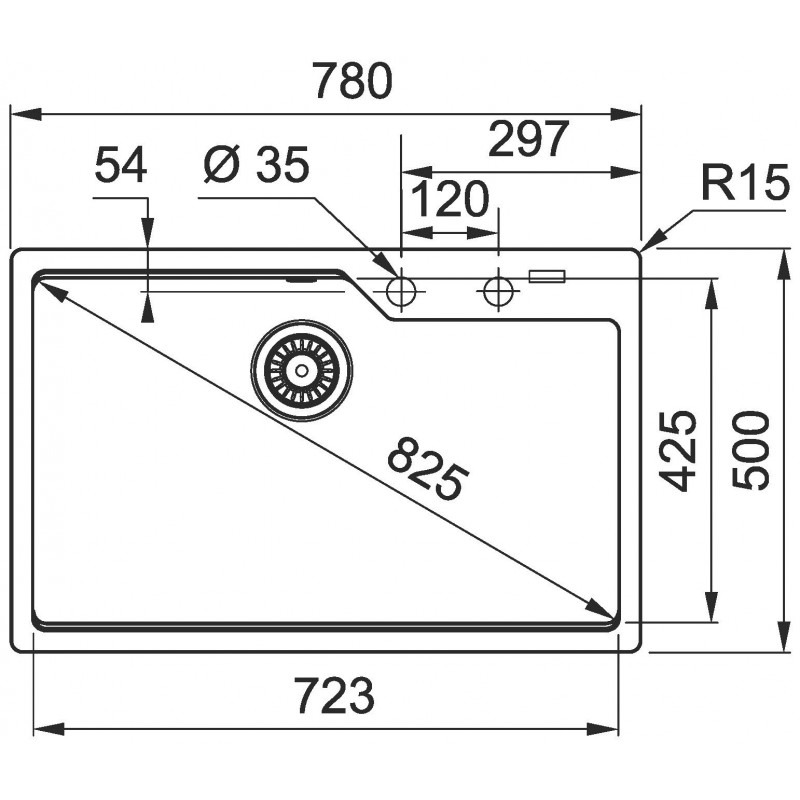 - Dimensions de l'évier: 780 x 500 mm