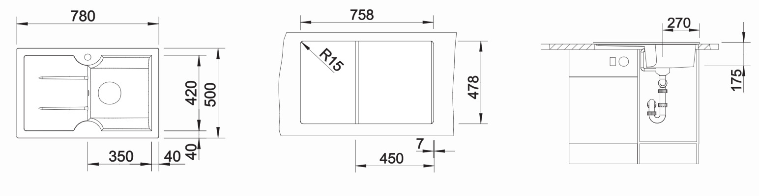 Blanco Evier Idessa 45 S en Céramique à encastrer 78x50cm, Noir (514500)