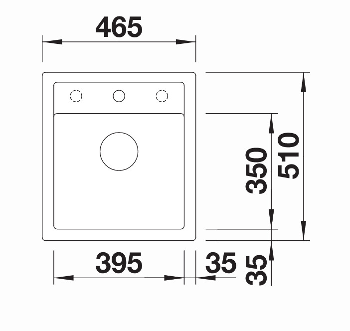 - Evier : 465 x 510 mm