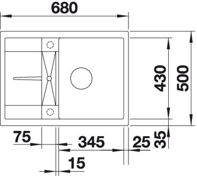 - Evier : 680 x 500 mm