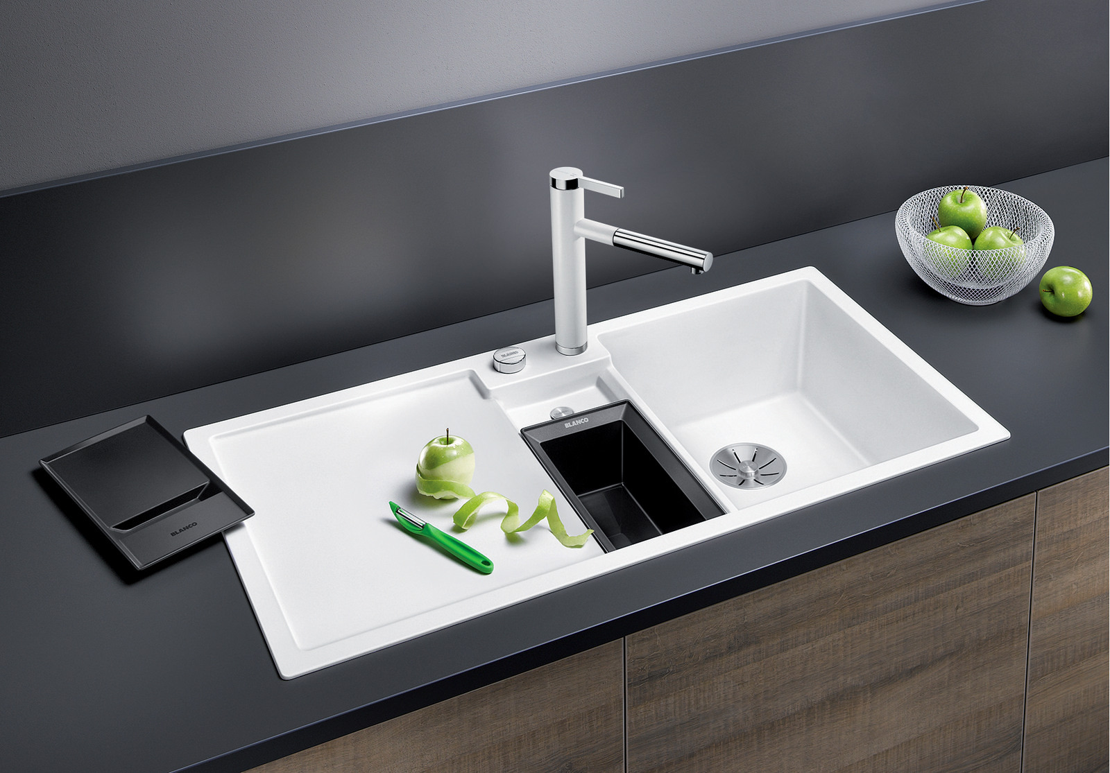 - Compartiment de tri intégré pour les épluchures : idéal en combinaison avec les systèmes de tri sélectif des déchets ménagers BLANCO SELECT et BLANCO FLEXON II