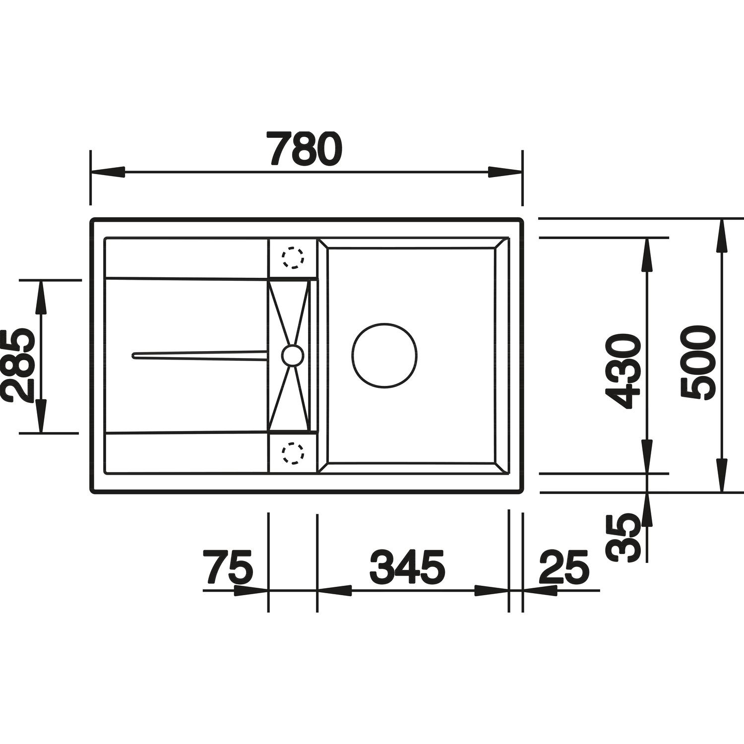 Evier Metra en Silgranit à encastrer 78x50cm, Béton-style (525312)