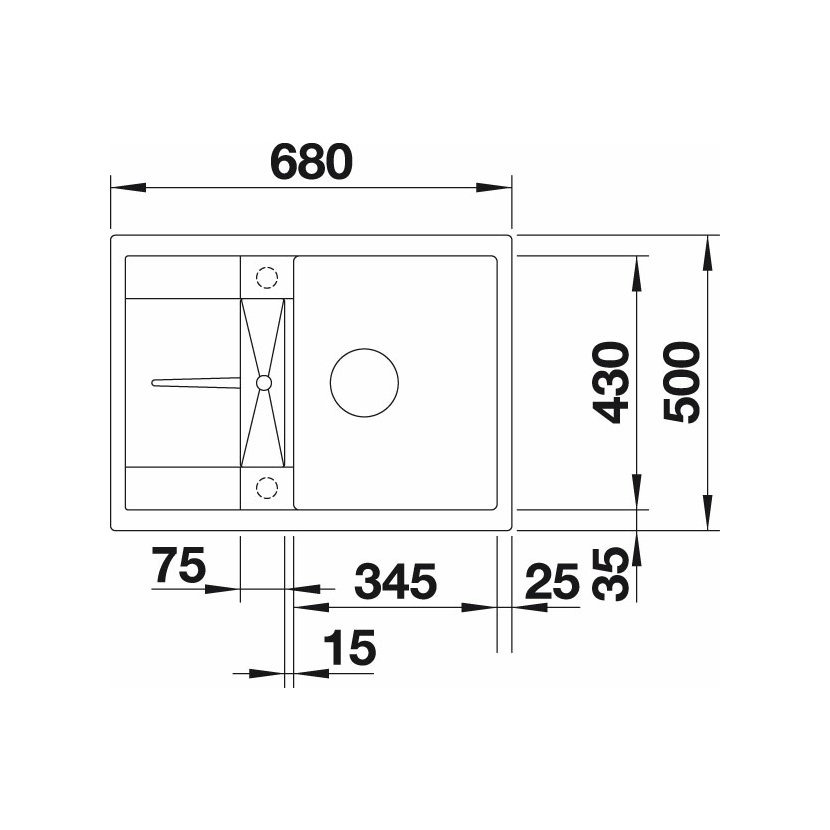 - Evier : 680 x 500 mm