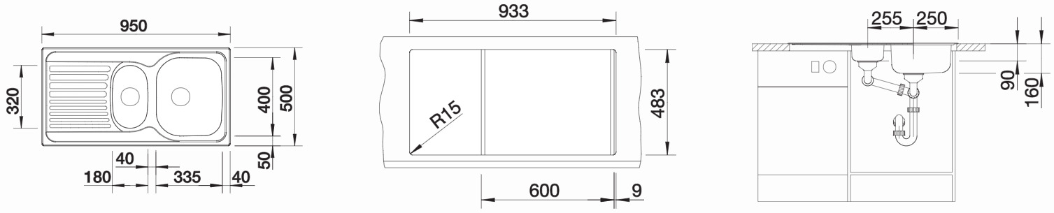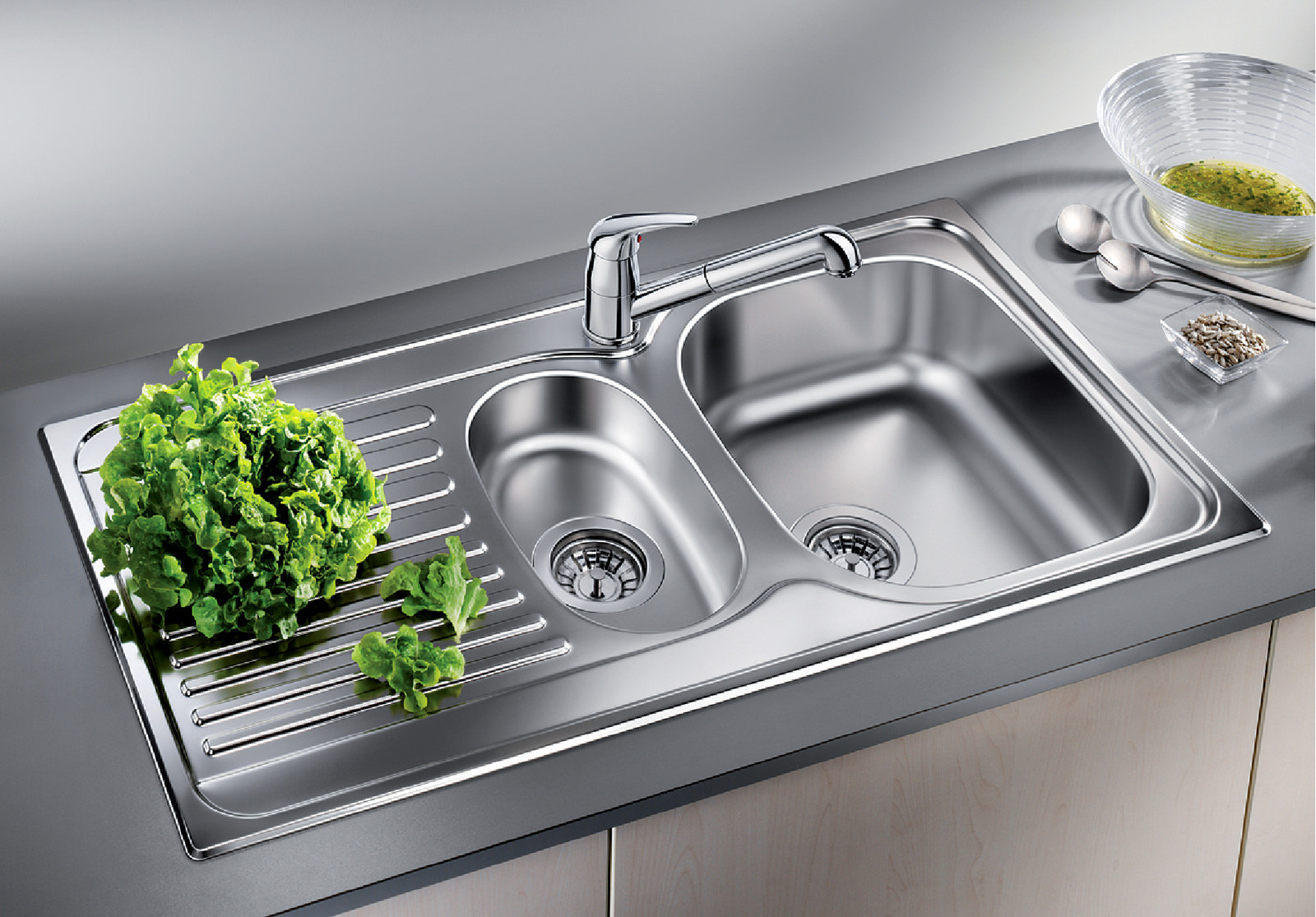 Blanco Tipo 6 S Basic Evier en Acier inoxydable 1,5 bac + égouttoir réversible et vidage manuel, 95x50cm (512303)