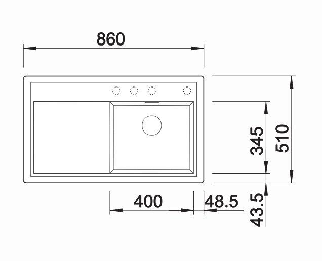 - Evier : 860 x 510 mm