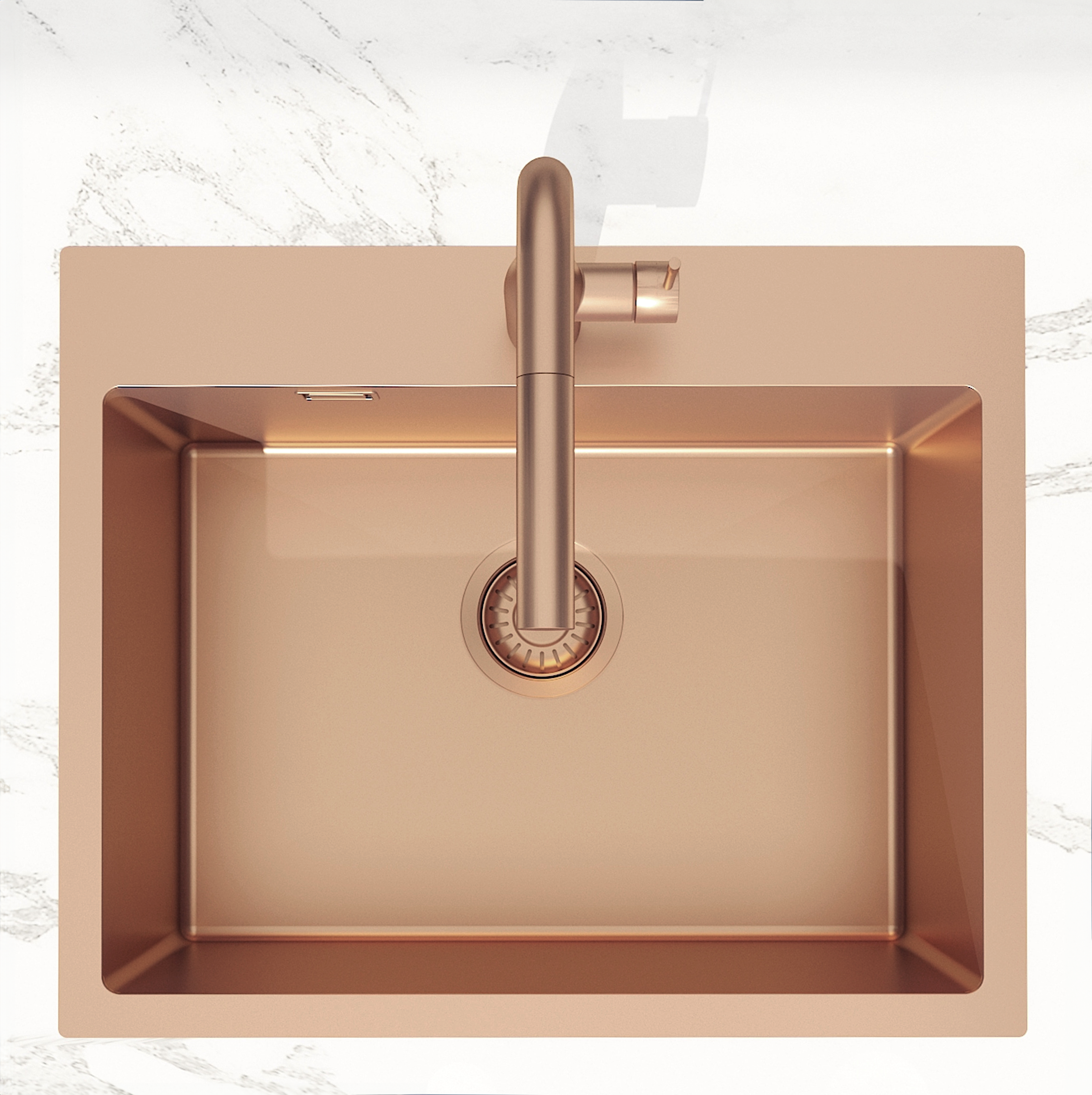 Swiss Aqua Technologies Aurum Évier de cuisine encastrable inox 304, 1 bac, 55x45x21 cm, Cuivre brossé PVD