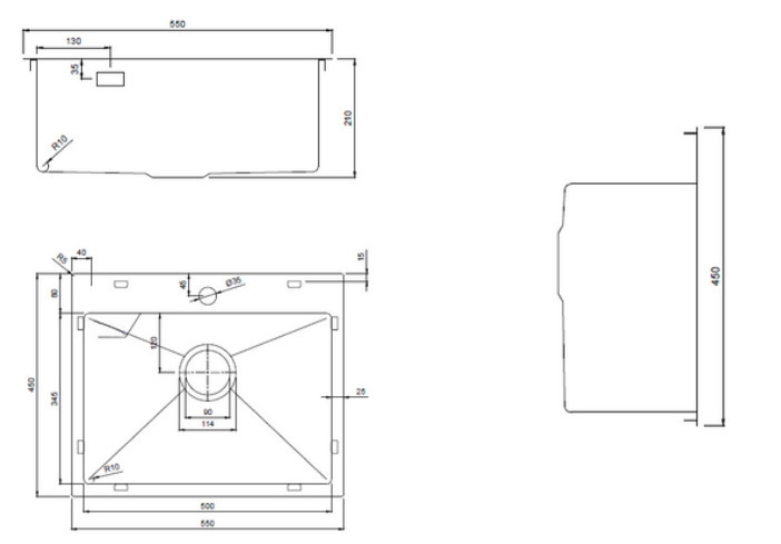 Caractéristiques de l'évier à encastrer Aurum en acier inoxydable 304, 55x45x21 cm, avec trop plein, Or brossé PVD (SATSINK5545BG):