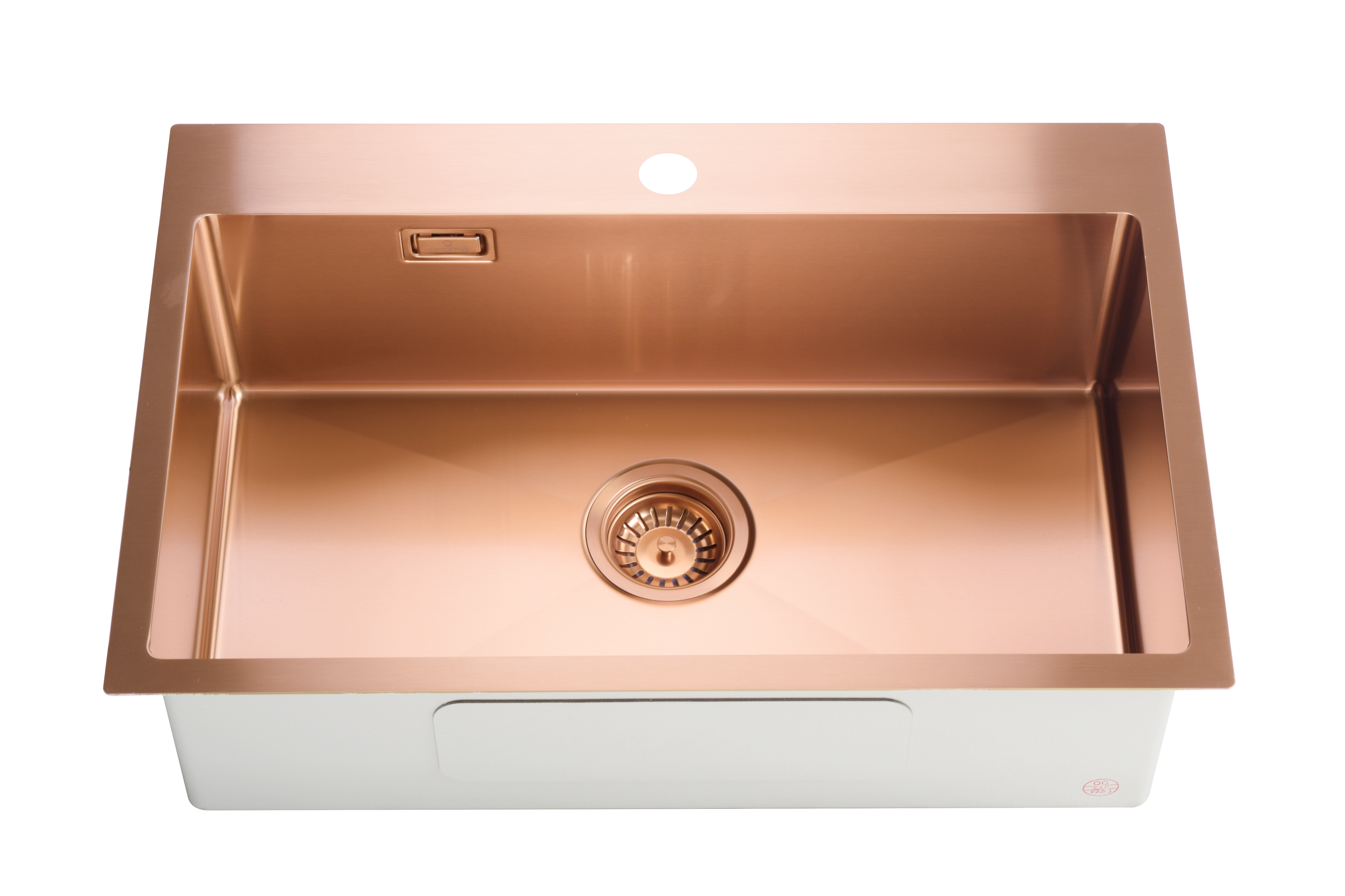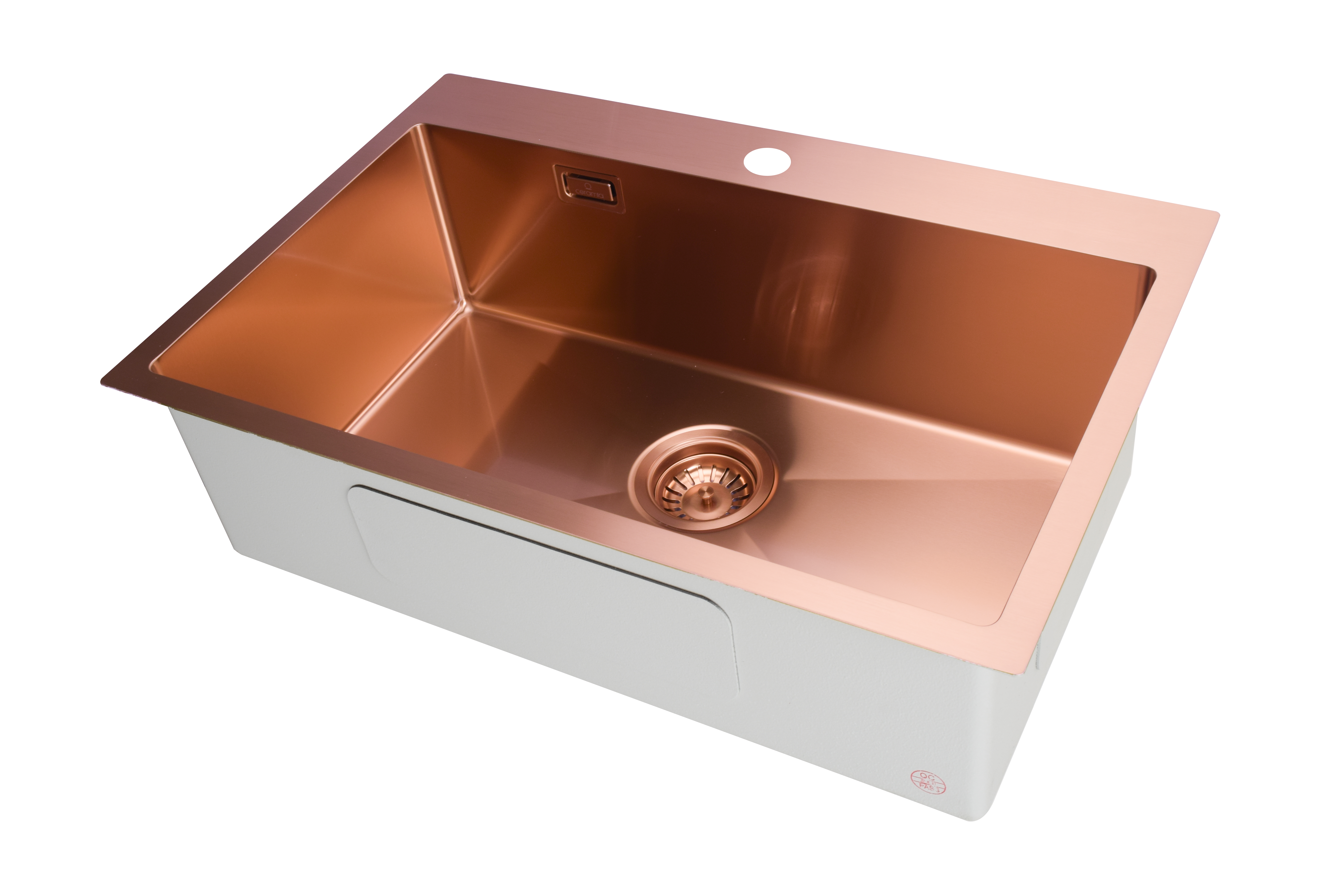 Ceramia Timeless Évier de cuisine encastrable inox 304, 1 bac, 68x45x21 cm, Cuivre brossé PVD