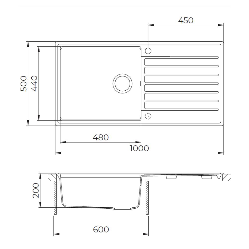 - Dimensions de l'évier : 100x50 cm