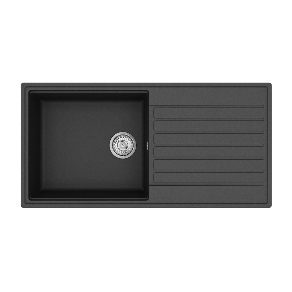 Caractéristiques de l'Evier 100x50 cm avec égouttoir réversible en Granite, à encastrer, Noir (SATSINKGQK103B) :
