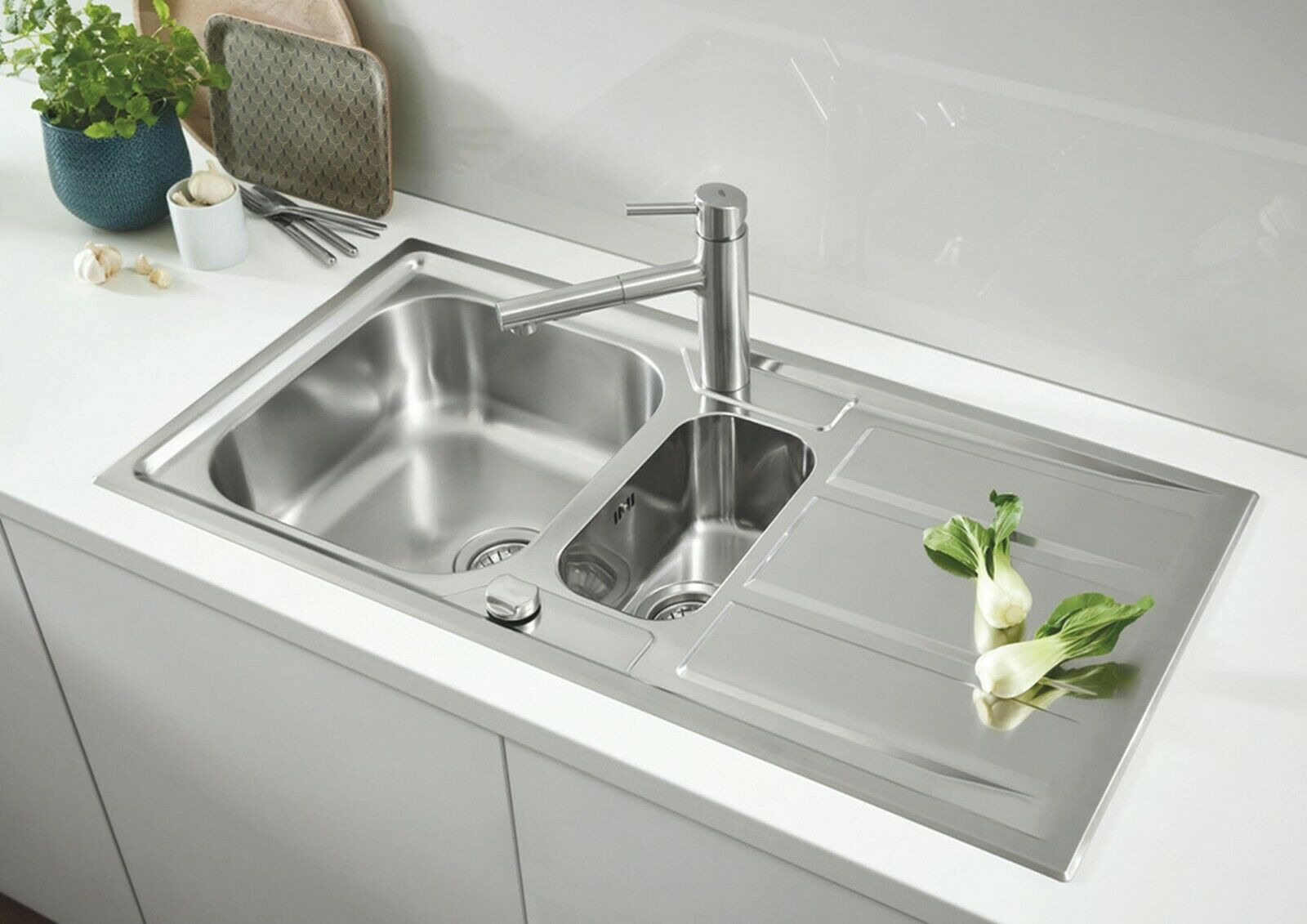 Grohe K400 Evier à encastrer 965 x 500mm avec une cuve + vide sauce + égouttoir réversible, Acier inoxydable (31567SD0)