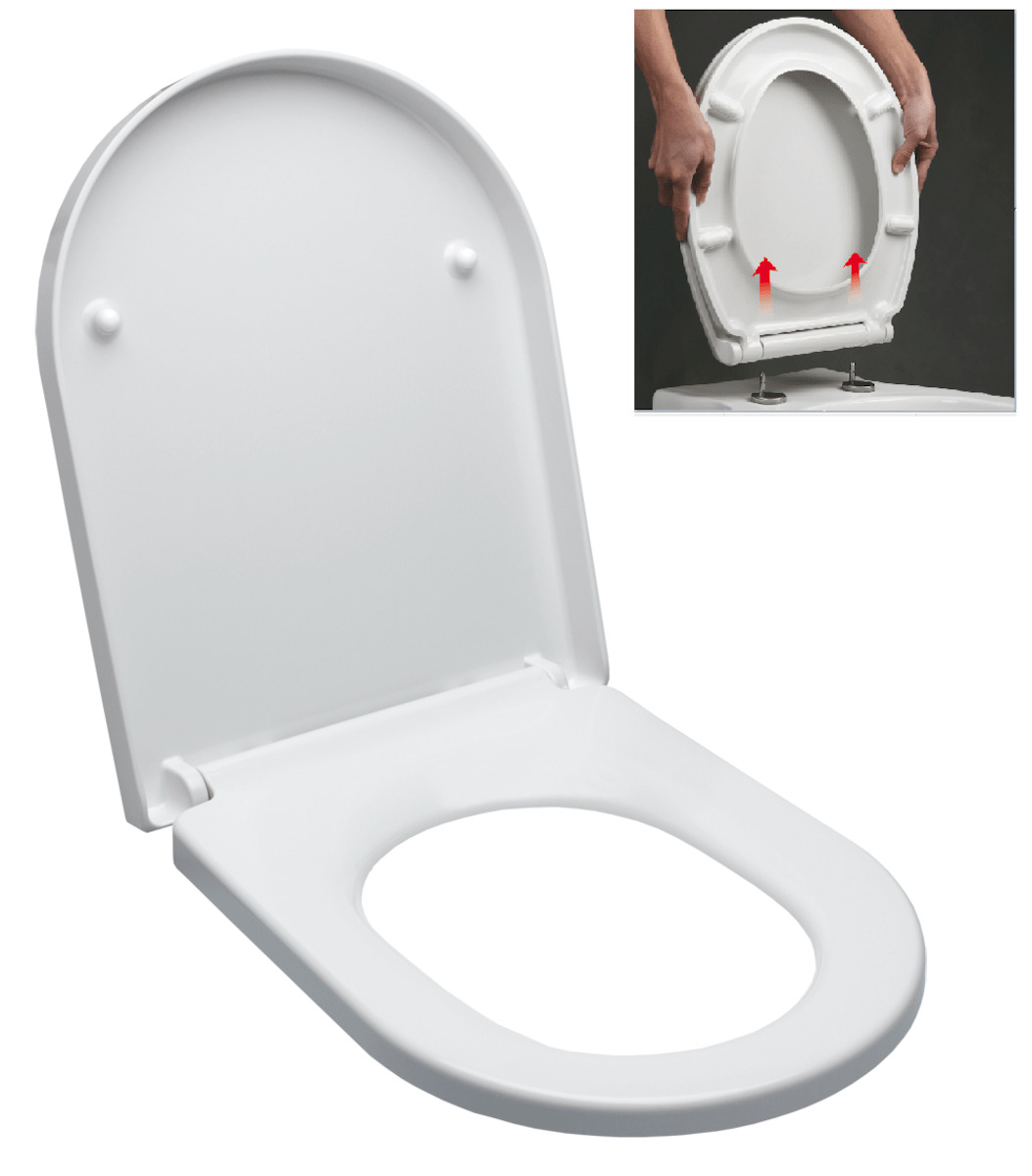 Système de verrouillage EASY : il vous suffit de le retirer en un clic de la cuvette, de nettoyer l'ensemble puis de simplement enclencher le dossier.