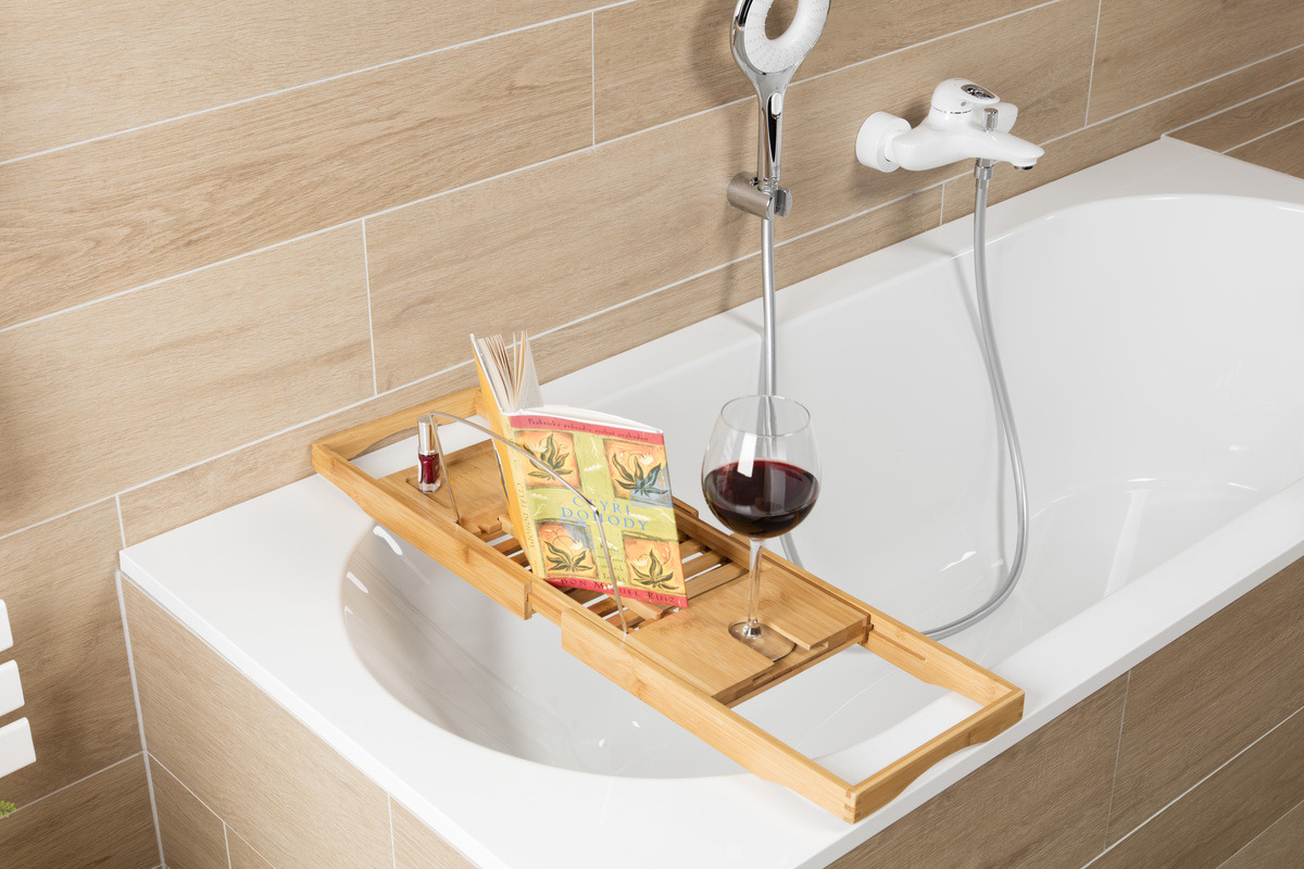 Un plateau de baignoire coulissante en 100% bambou est la solution parfaite pour profiter pleinement de son bain.