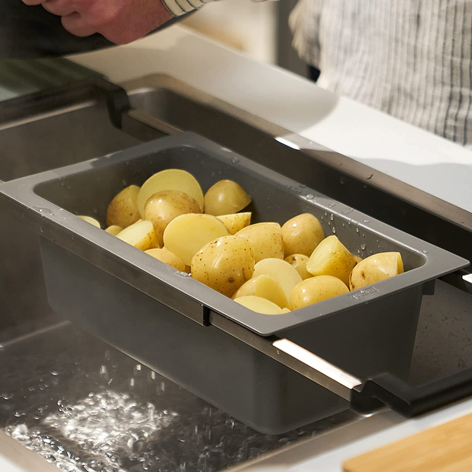 Franke ALL IN Set d'accessoires universel Planche à découper Bambou 32x20 + Panier égouttoir PVC Noir Sanitized (ALLINSET-1-SP)
