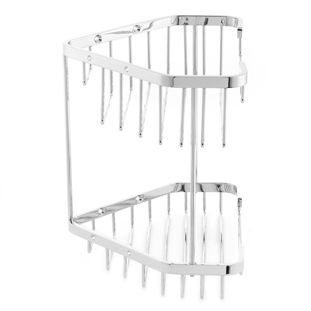 L’étagère murale d’angle à deux niveaux, de dimensions 200x206x160 mm, offre une utilisation pratique au quotidien, par exemple pour le rangement de produits cosmétiques.