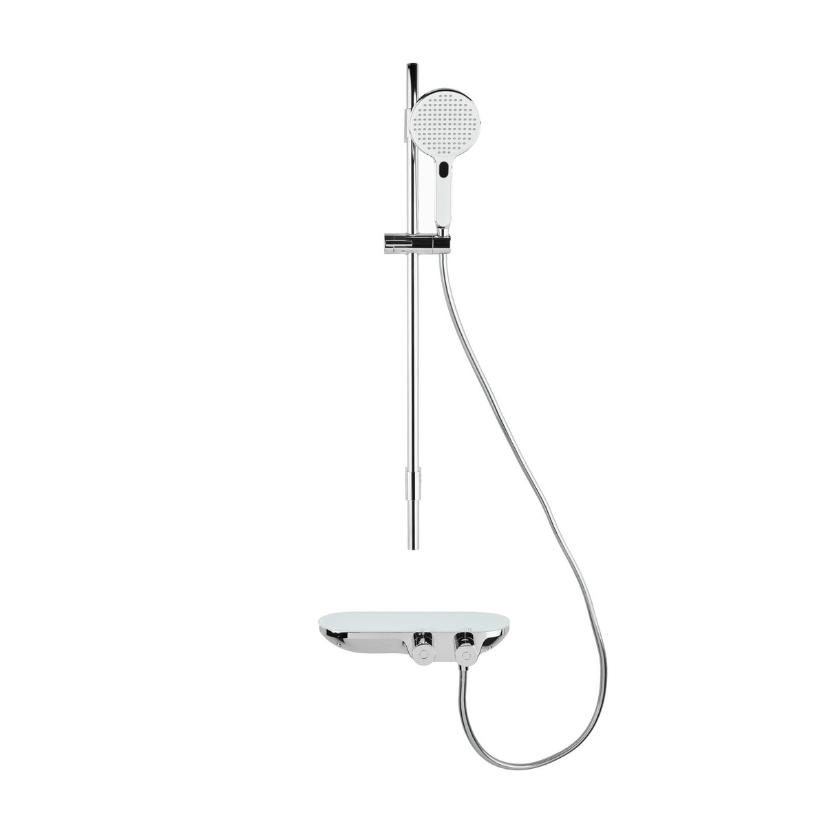 Caractéristiques de l'Ensemble de douche avec douchette 3 jets, mitigeur thermostatique, barre 90.5cm, Chrome/Blanc (SATSSTKPF1) :