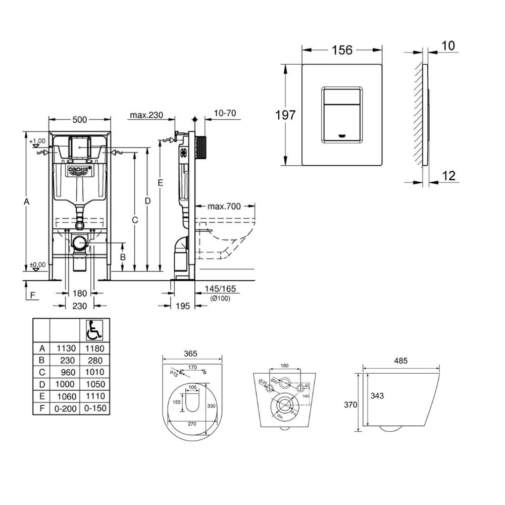 Pack WC Bâti Solido + WC sans bride SAT Noir mat + Abattant frein de chute + Plaque noir mat (AUTOPORTANT-BLACKINFINITIO-KF0)