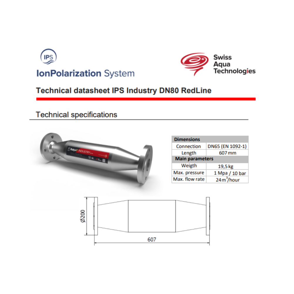 Caractéristiques de l'adoucisseur d'eau Industriel Anticalcaire Antibactérien innovant IPS Kalyxx RedLine DN80 Swiss Aqua Technologies (IPSINRDN80P) :