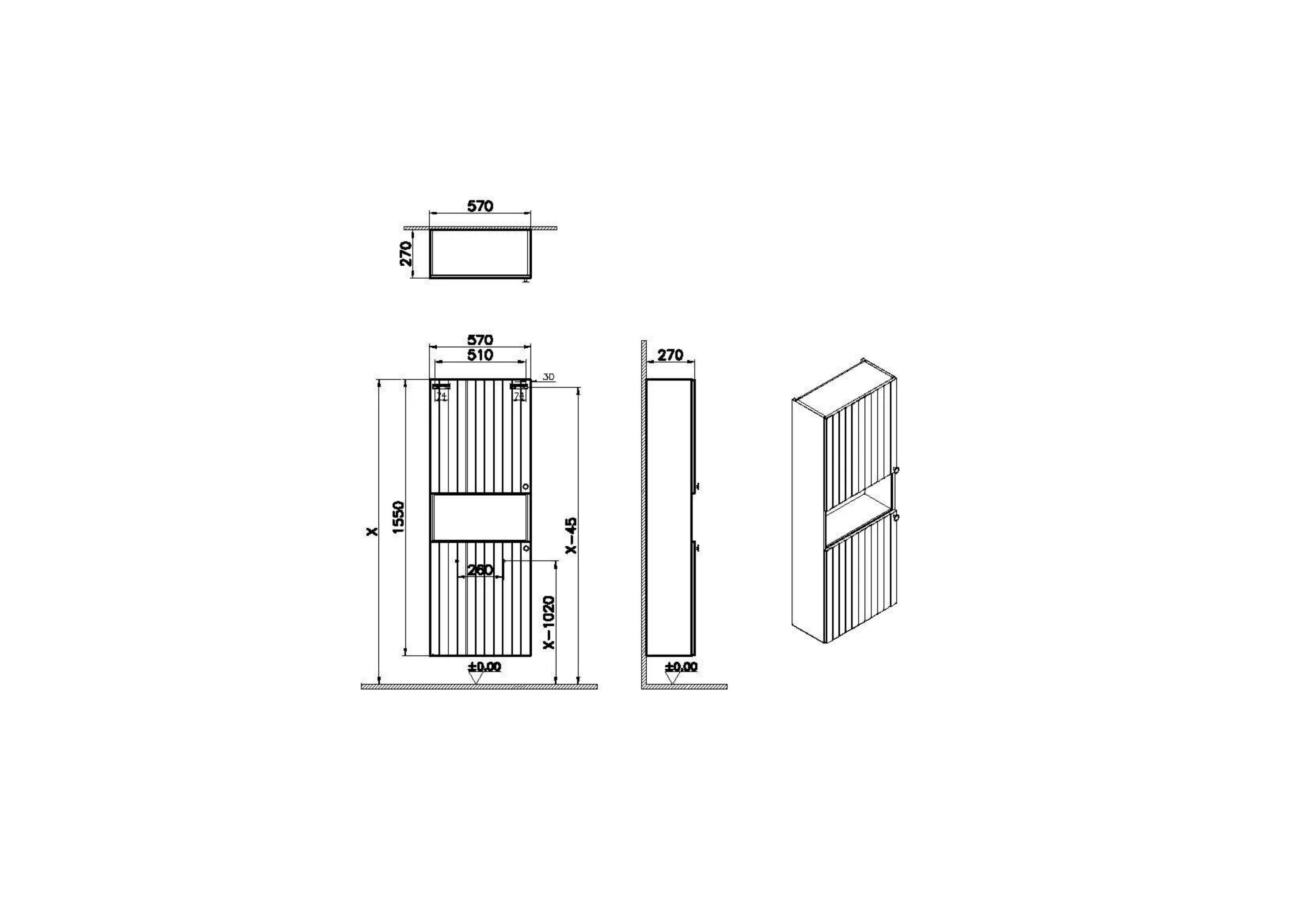 Avec des dimensions de 55 cm de largeur, 155 cm de hauteur et 25 cm de profondeur, ce meuble compact est idéal pour optimiser l’espace dans les petites salles de bain, tout en offrant une solution de rangement pratique et esthétique. Les dimensions détaillées sont disponibles sur la photo.