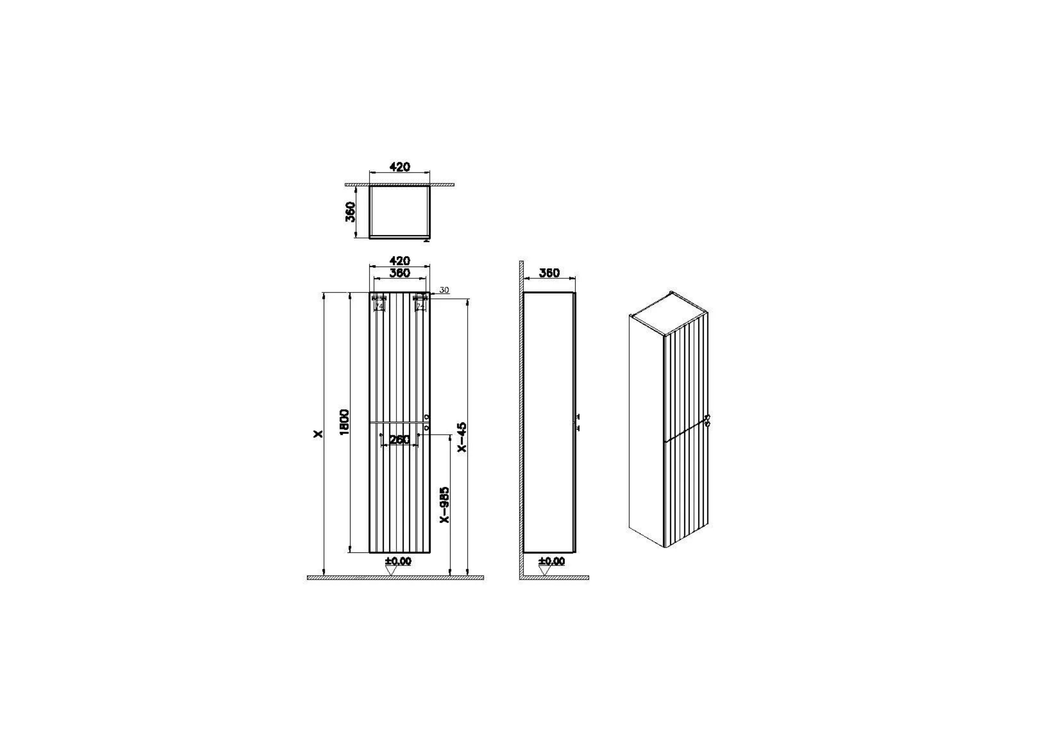 Avec des dimensions de 40 cm de largeur, 180 cm de hauteur et 35 cm de profondeur, ce meuble s’intègre parfaitement aux petites salles de bain, alliant avec équilibre style et praticité. Les dimensions détaillées sont disponibles sur la photo.