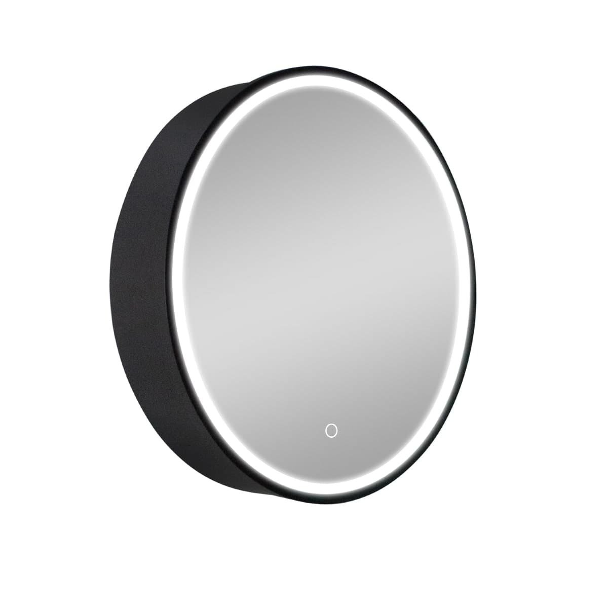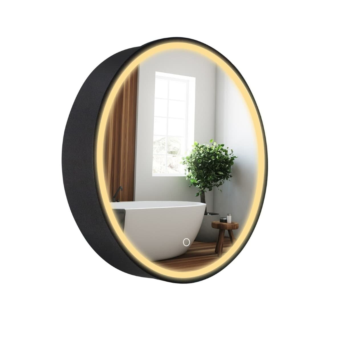 Swiss Aqua Technologies 60x60x12,5 cm armoire suspendue de salle de bain ronde avec miroir intégré et éclairage, 2 étagères, noir (SATZGALED60CE)