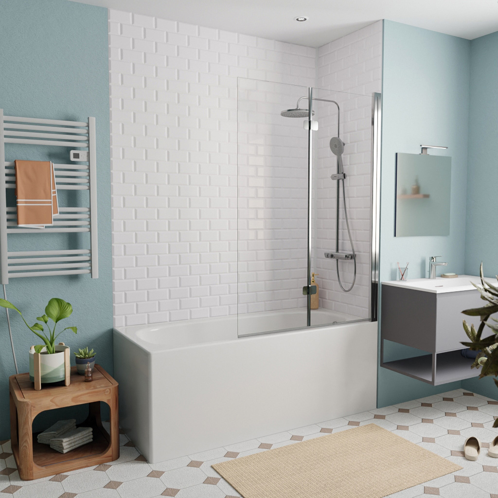 - Pare-baignoire pliable, 2 volets, en verre, 150x105cm, Chrome (SATVZSKNEW105)