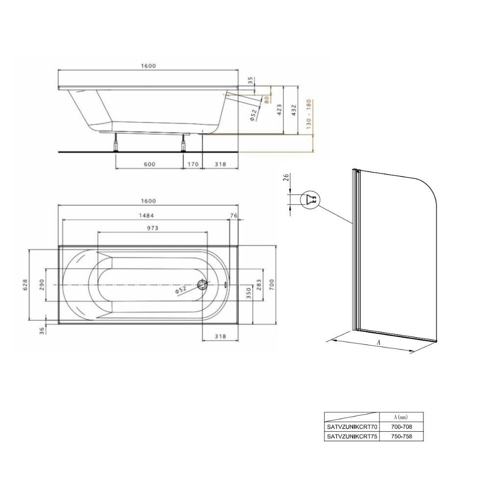 • Swiss Aqua Technologies Pare-baignoire avec un panneau pivotant en verre, 150x75cm, Chrome (SATVZUNIKCRT75)