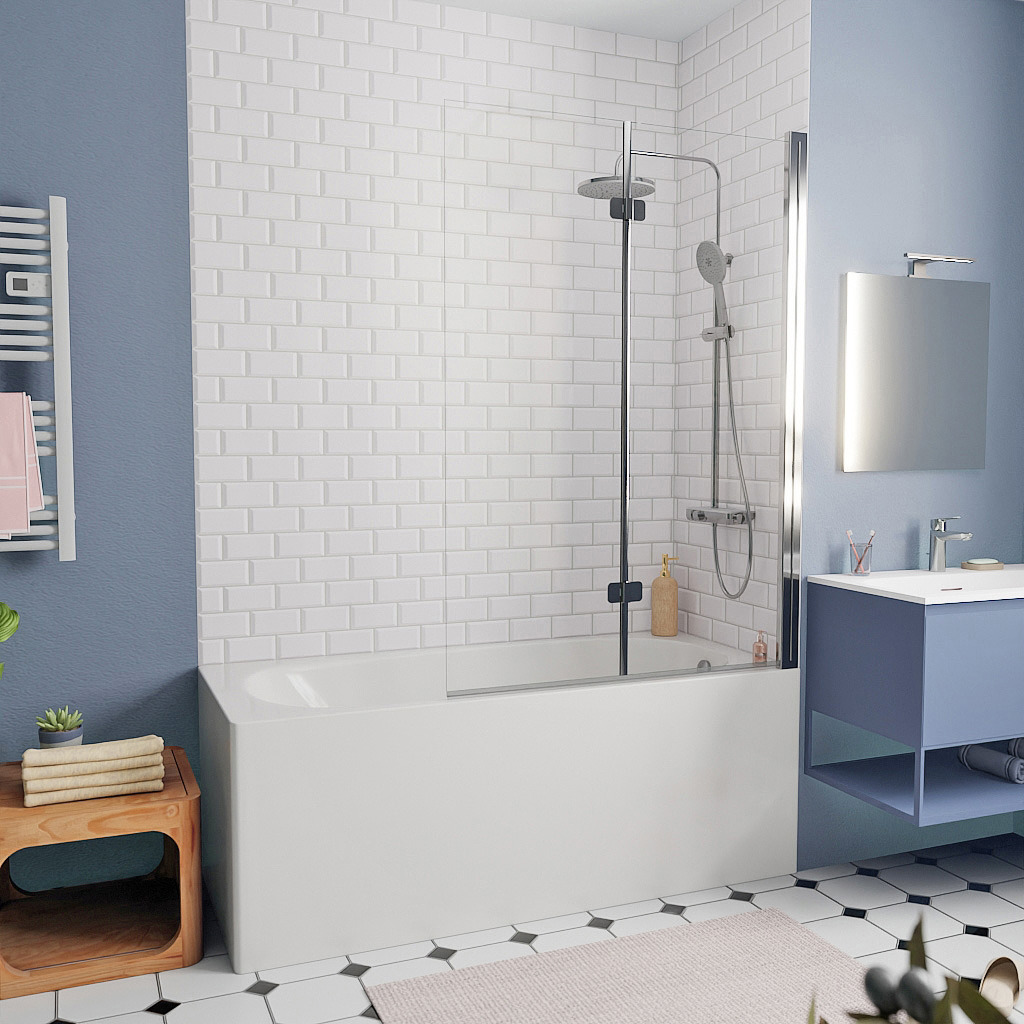 - Swiss Aqua Technologies Pare-baignoire pliable, 2 parties, en verre, 150x105cm, Chrome (SATVZSKNEW105)