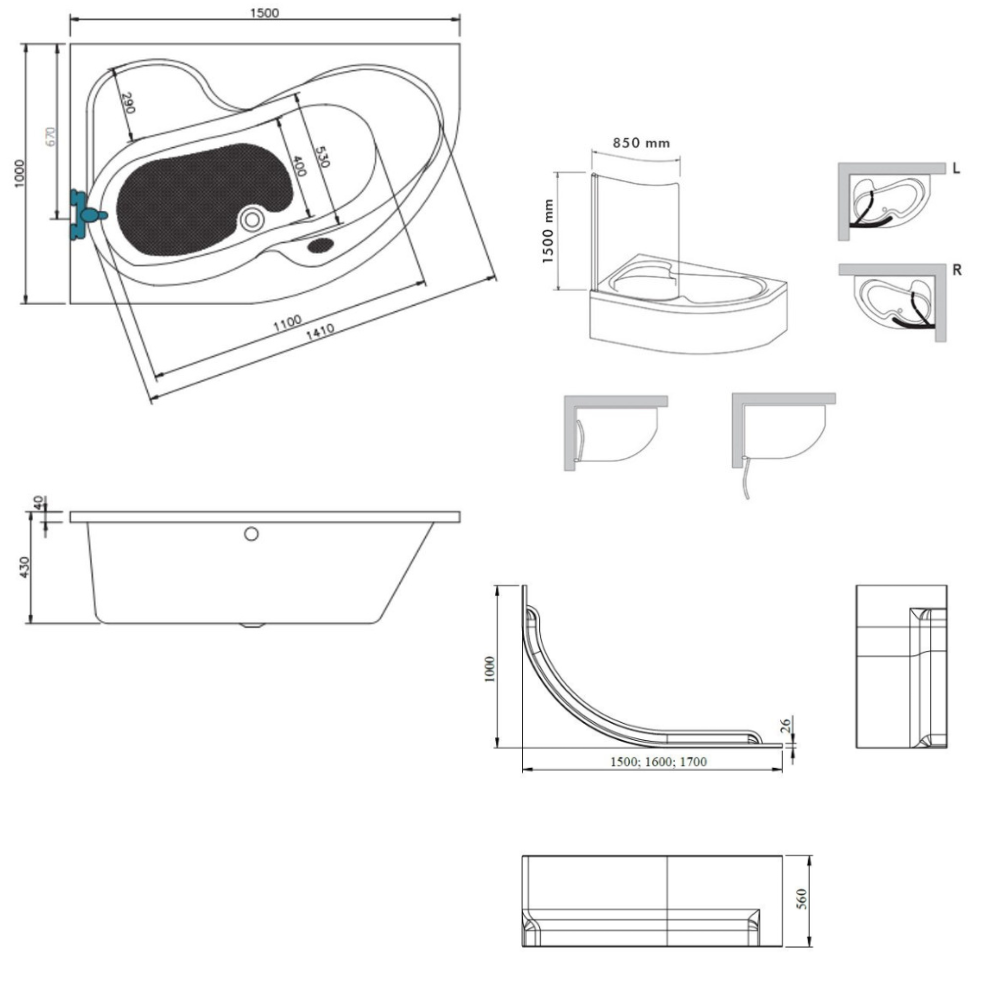 - Pour baignoire d'angle Laguna Fortuna Plus 150 cm