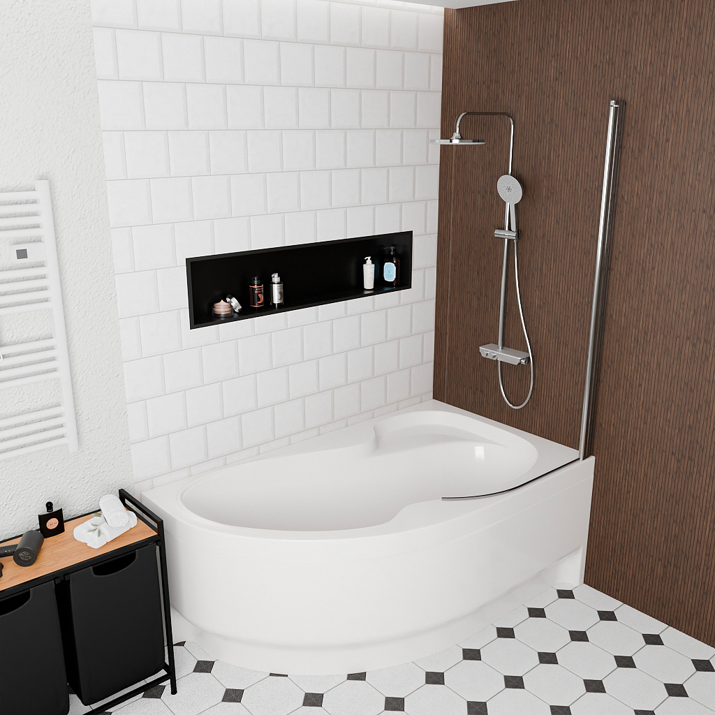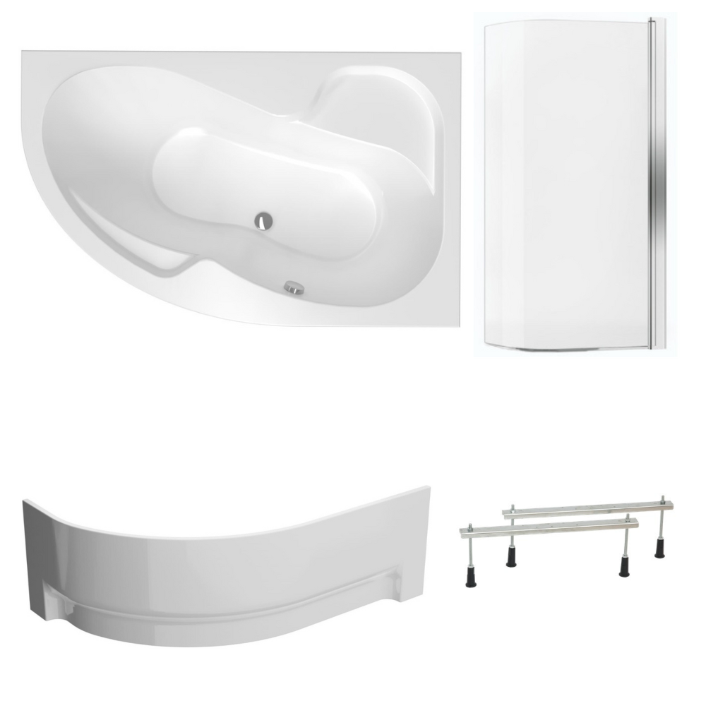 Siko 170x100 cm Fortuna Plus baignoire asymétrique en acrylique, droite + tablier + pare-baignoire + pieds, blanc (FO1700PPLUS-SETP1)