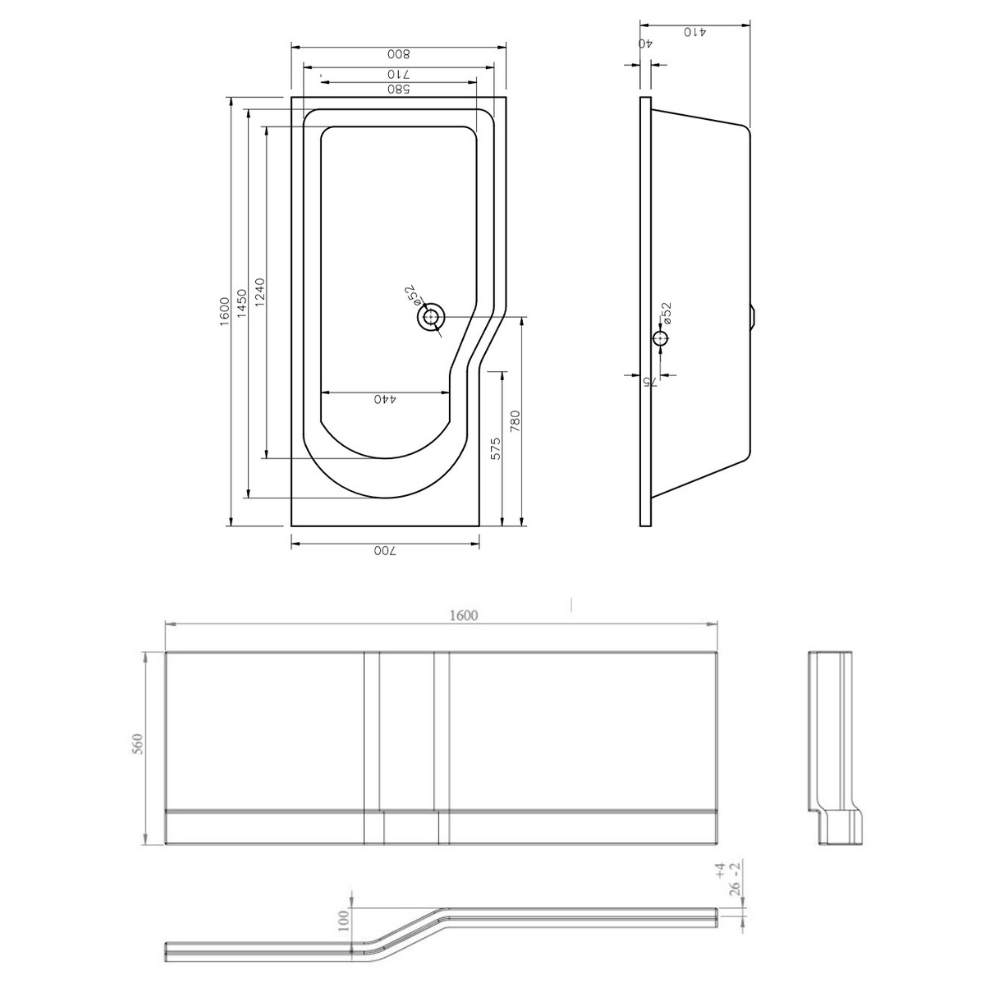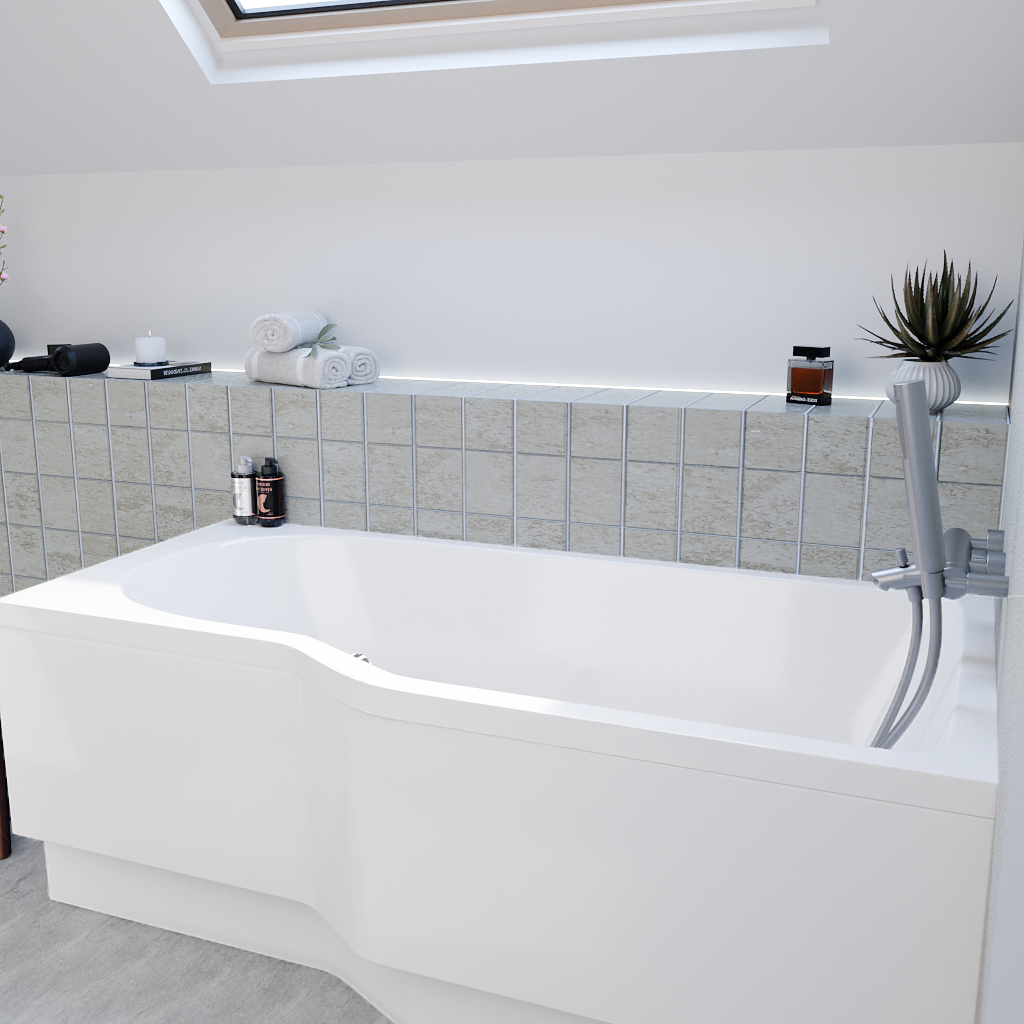 - Type de produit:Baignoire asymétrique avec tablier et pieds