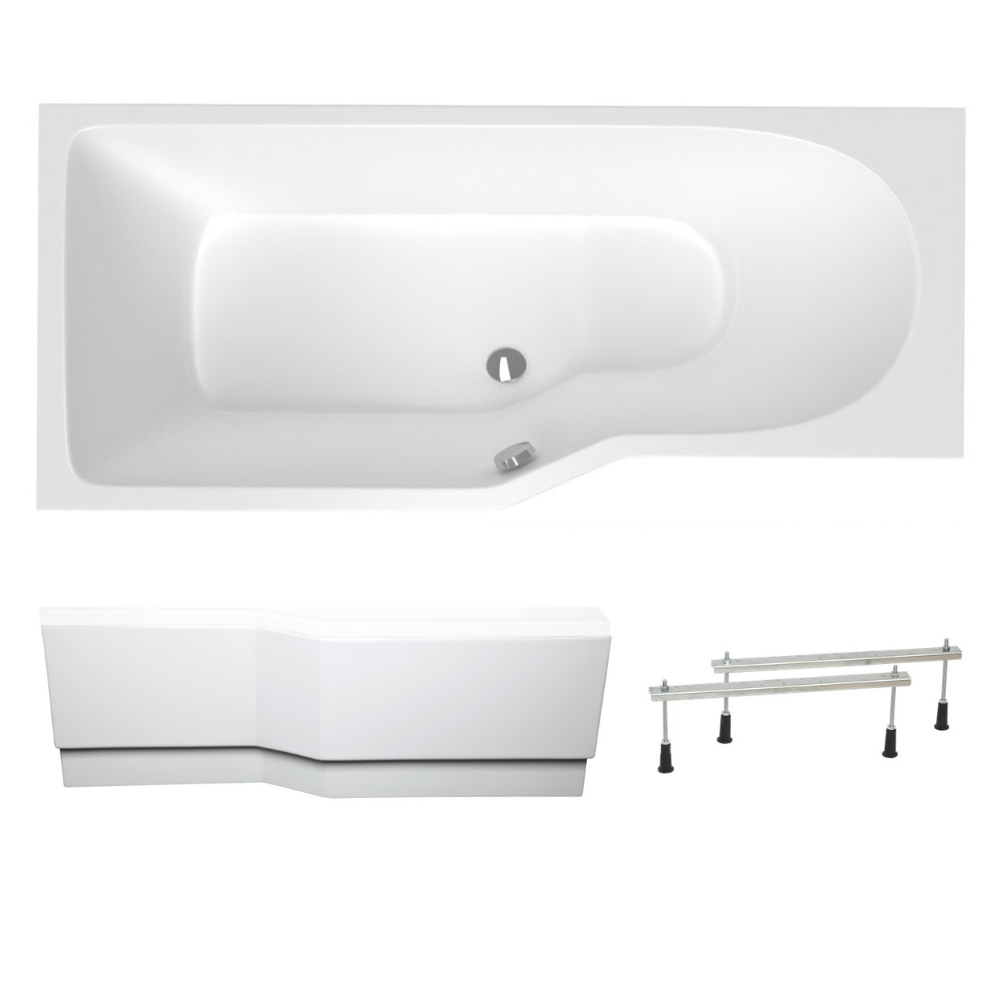 Siko 160x80 cm Beata Plus baignoire bain/douche asymétrique en acrylique, droite + tablier 160 cm + pieds, blanc (BE1600PPLUS-SET1)