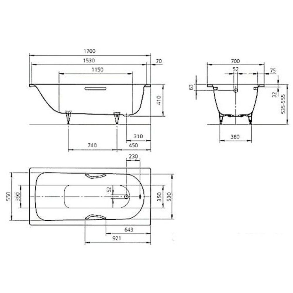 Kaldewei Saniform Plus baignoire rectangulaire avec pieds 170x70 cm acier émaillé, Blanc alpin (111800013001-SET)