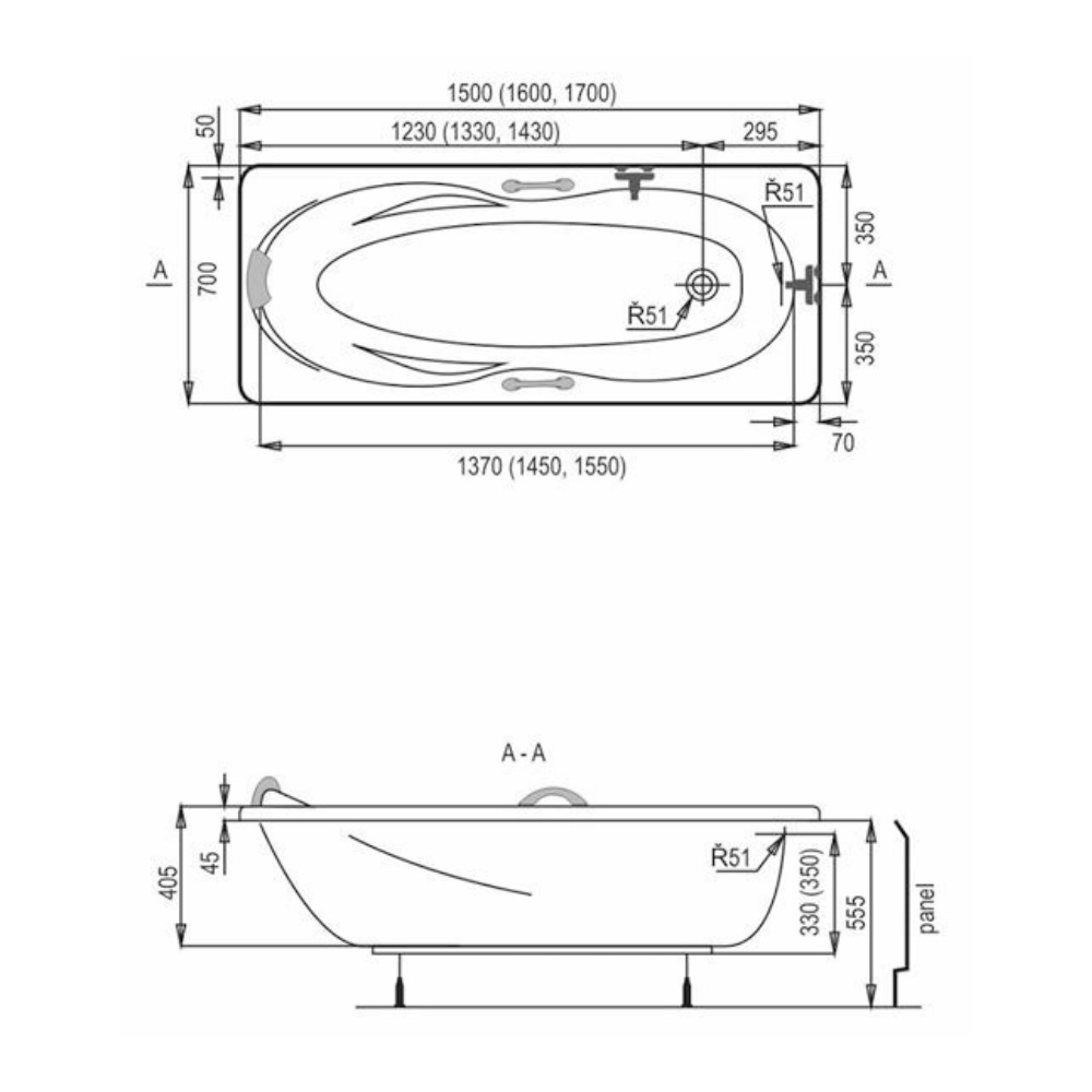 - Baignoire à bac rectangulaire orientation gauche et droite