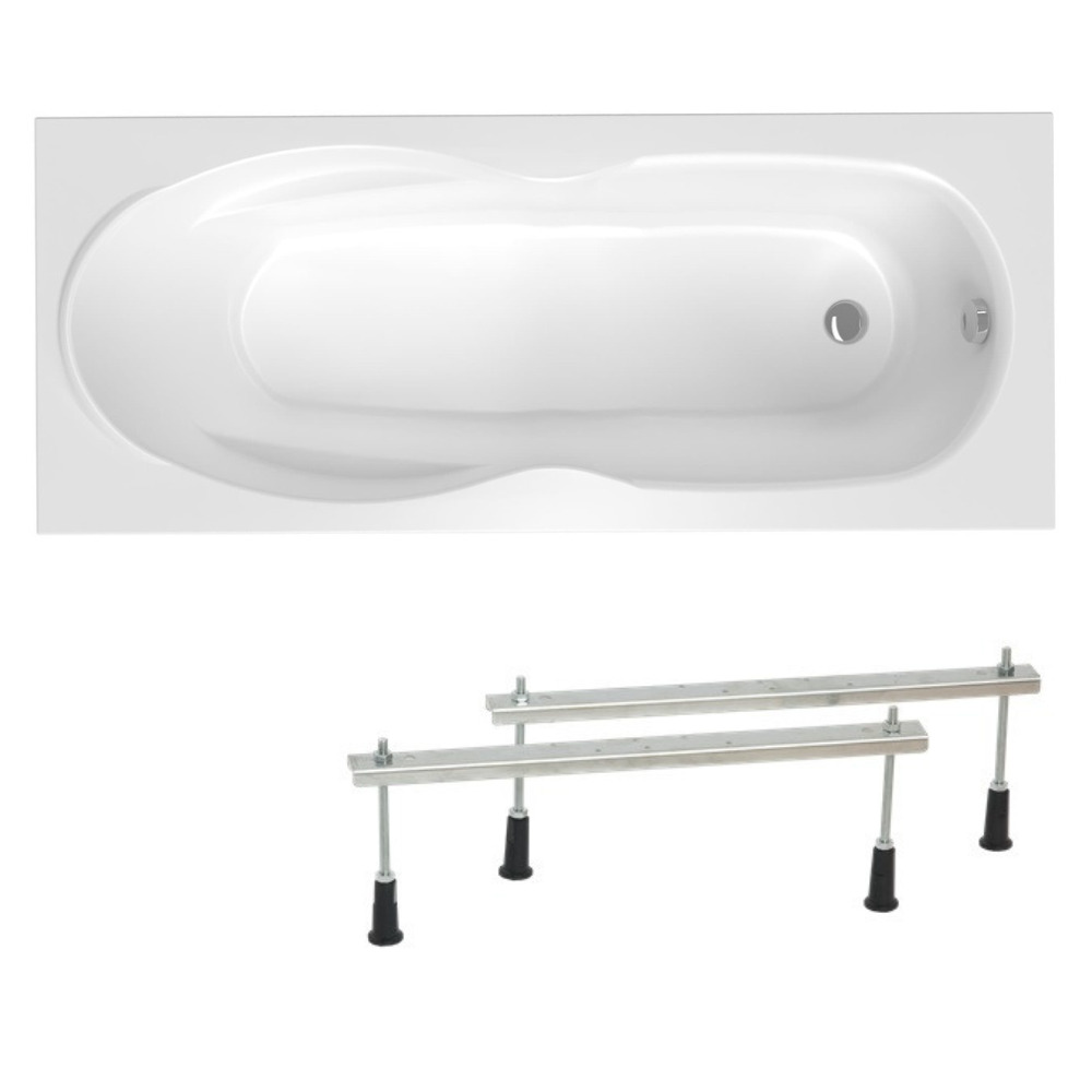 Siko 160x70 cm Mahé baignoire rectangulaire avec pieds, acrylique, gauche et droite, Blanc (MH1600NEW-SET)