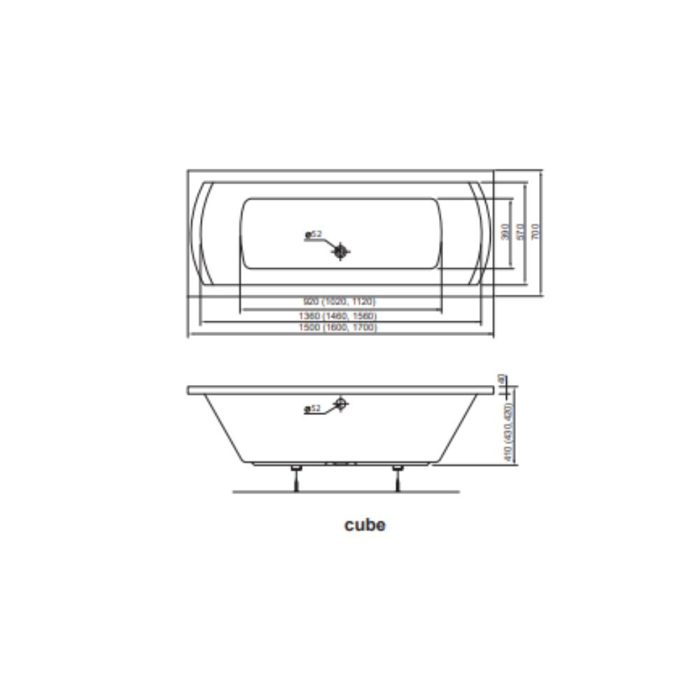 Caractéristiques de la Baignoire rectangulaire avec pieds, Siko Laguna Cube Way Plus, 160x70 cm, Acrylique, Gauche et Droite, Blanc (CUB1600PLUS-SET) :