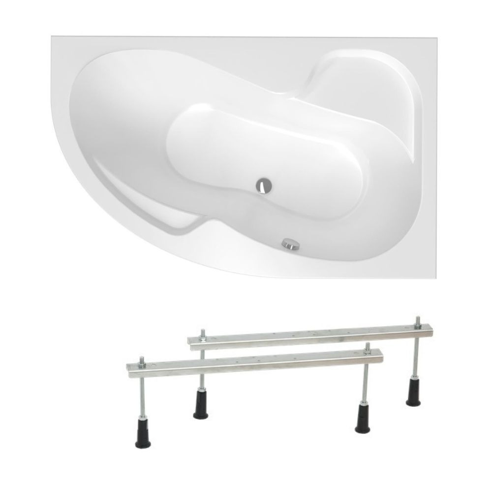 Siko 150x100 cm Fortuna Plus baignoire asymétrique, avec pieds, acrylique, droite, Blanc (FO1500PPLUS-SET)