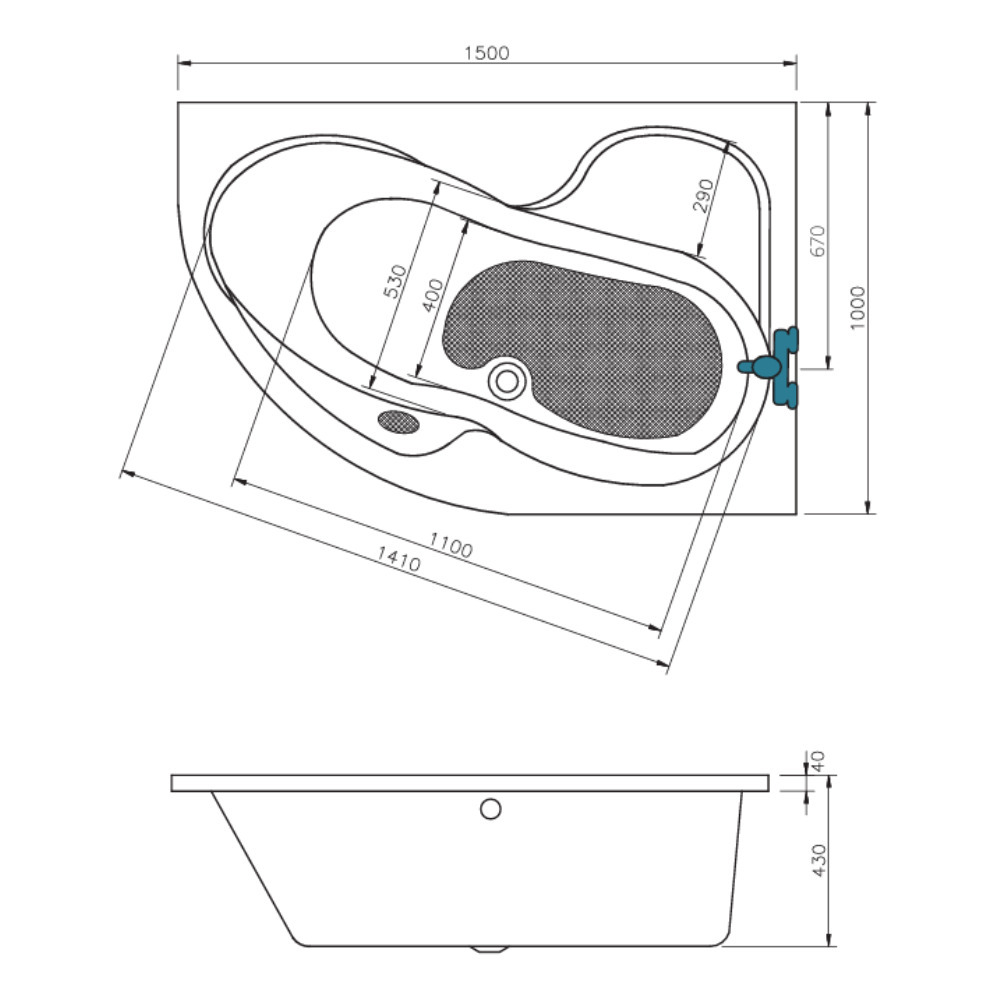 • Type de baignoire:Asymétrique