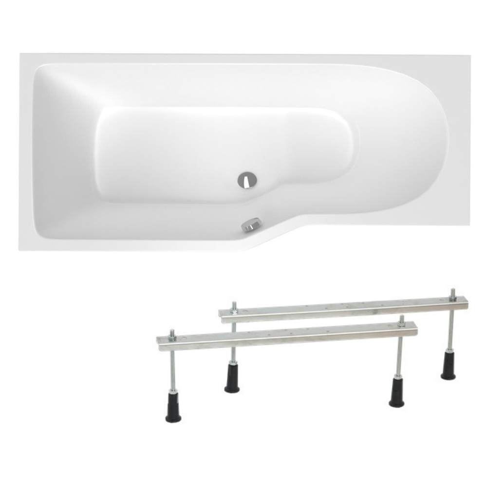 Siko 160x80 cm Laguna Beata Plus baignoire bain/douche asymétrique avec pieds, acrylique, gauche, blanc (BE1600LPLUS-SET)