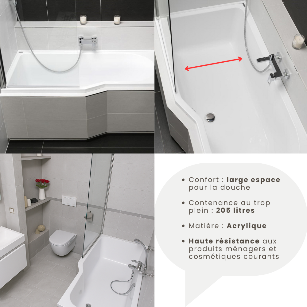 - Siko 160x80 cm Beata Plus baignoire bain douche asymétrique acrylique positionnement gauche, blanc (BE1600LPLUS)