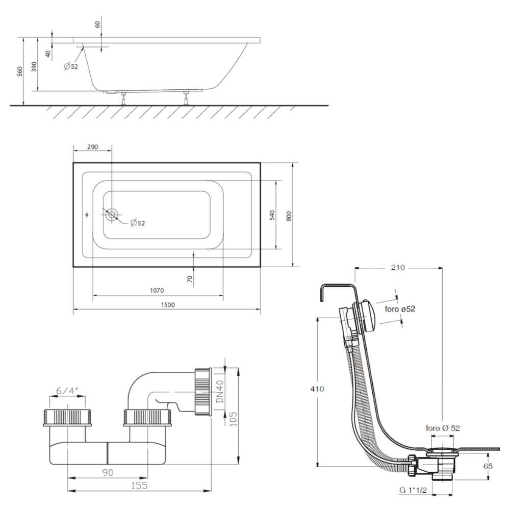 Siphon de baignoire MULTI 6/4x40mm-B /mères (E719) :