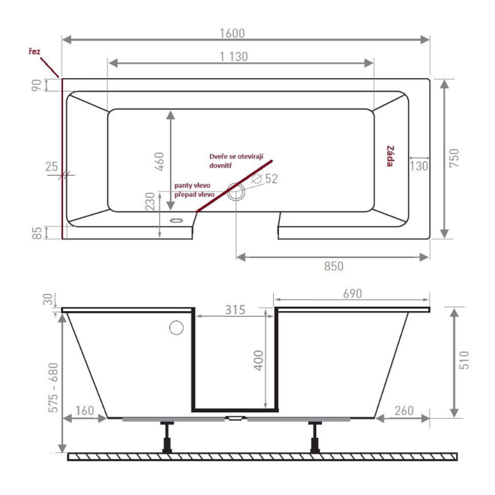 Caractéristiques de la baignoire PMR 160x75 cm avec porte ouverture à droite, 228L, blanc (SATVD160P):
