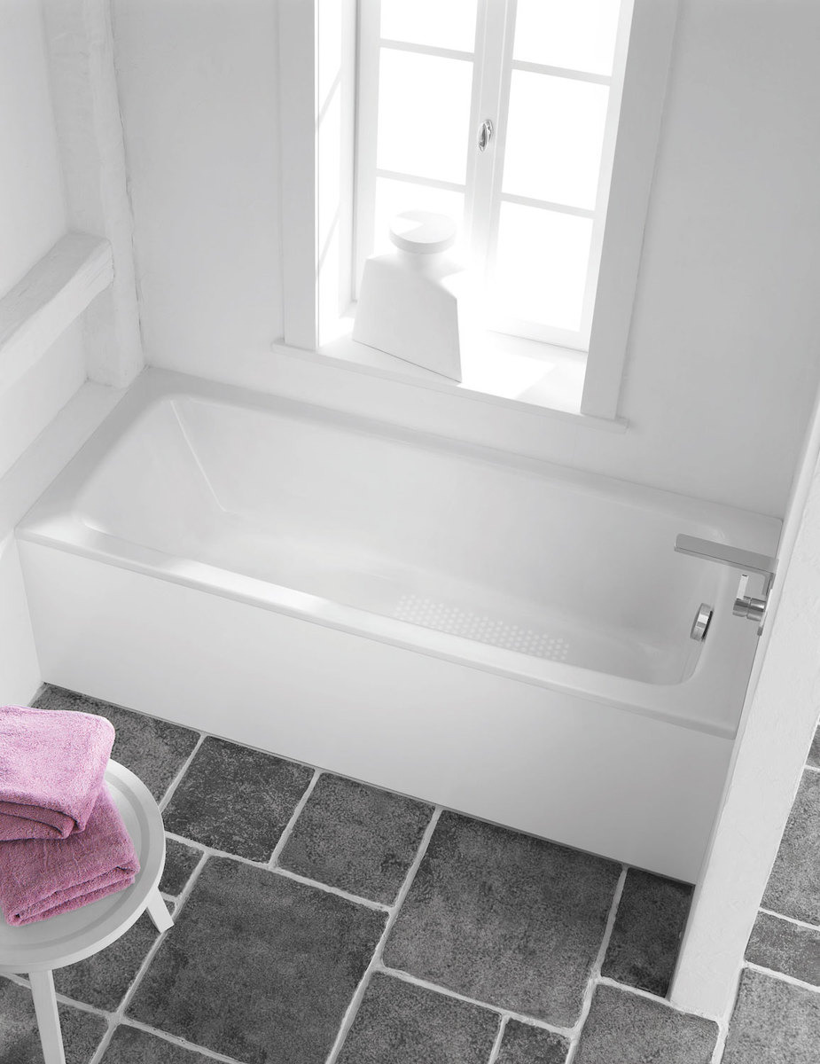 La série Saniform Plus offre une baignoire anatomique classique avec un drain situé dans la partie pied.