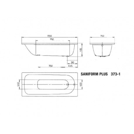 Caractéristiques de la baignoire rectangulaire Kaldewei Saniform Plus 123 L, 170x75 cm en acier émaillé, blanc alpin (112600010001) :