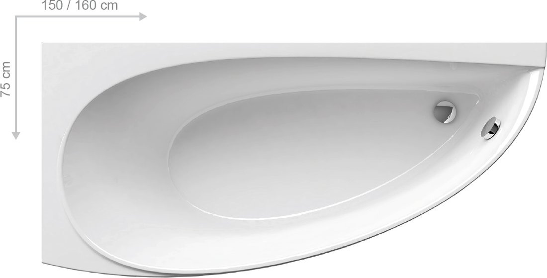 Ravak Avocado 150 x 75 cm Baignoire d'angle gain de place, orientation droite en acrylique, sans pieds, blanc (CS01000000)