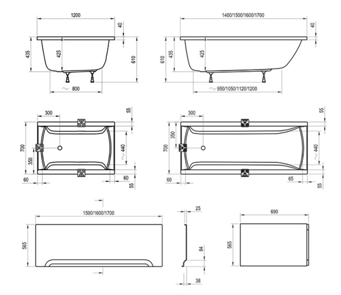 Caractéristiques de la baignoire rectangulaire 170x70cm, Acrylique, Swiss Aqua Technologies Fusion (SIKOVR170) :