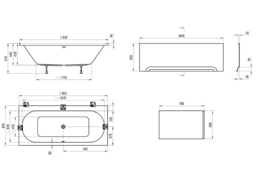Caractéristiques de la Baignoire rectangulaire 180 x 80 cm, acrylique, blanche, Ravak City (C920000000) :